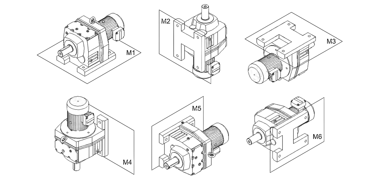 | Типоразмер | Присоединительные размеры | Выходной вал | Габаритные размеры | ||||||||||||||