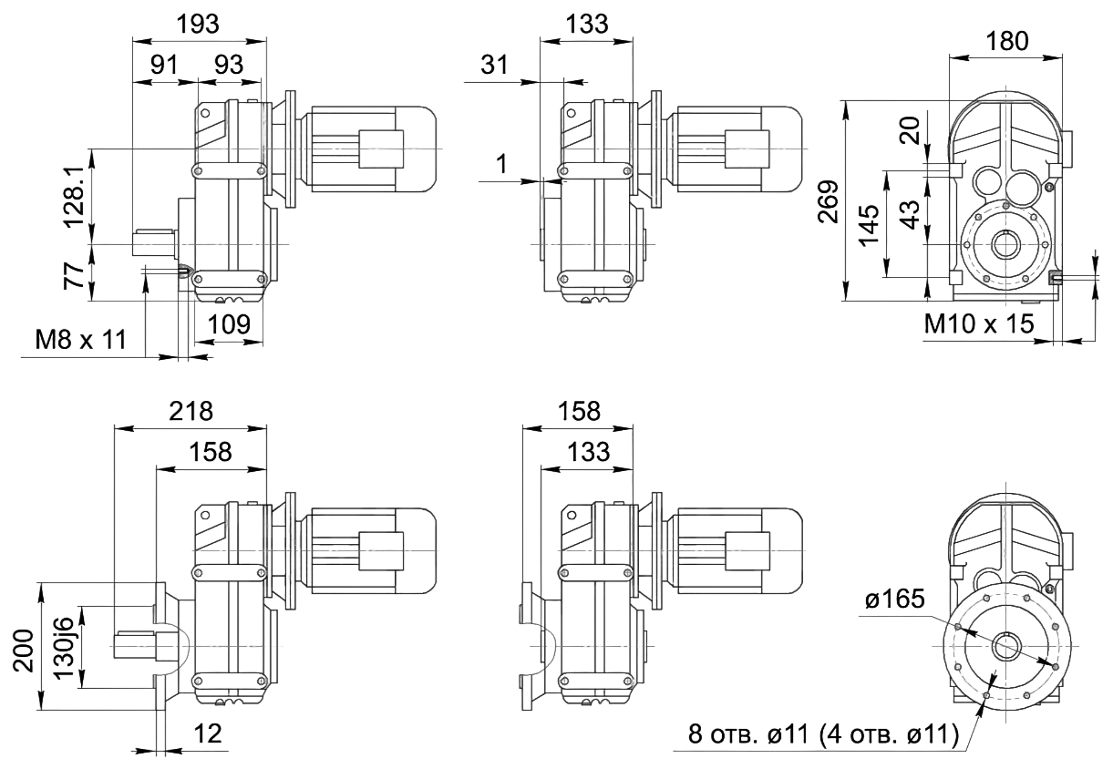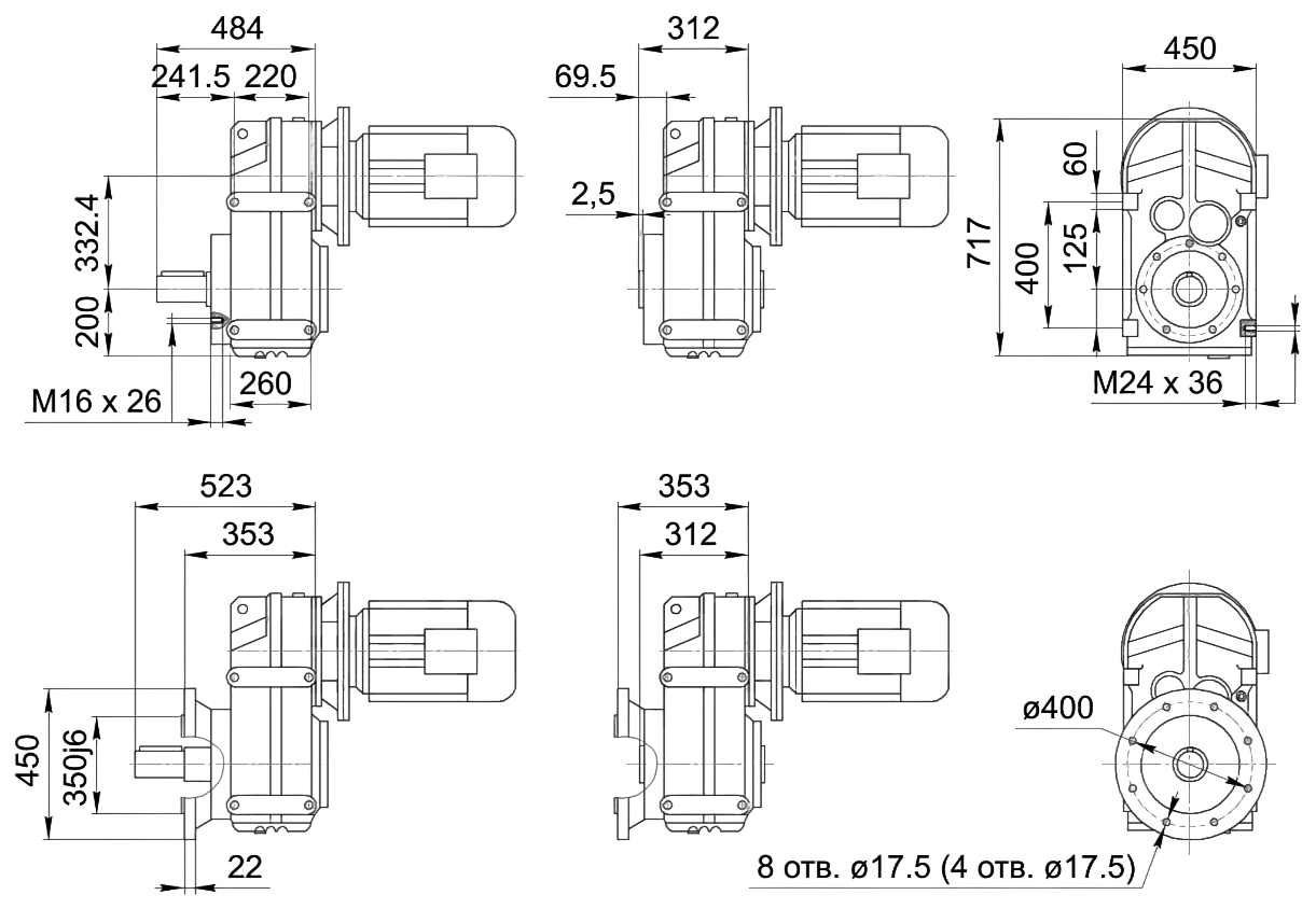 ![]() | F.. Цельный вал крепление с резьбовыми отверстиями |