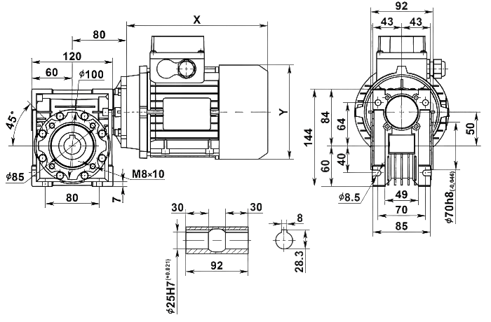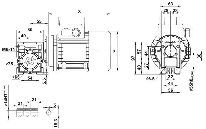 | 063 | 36 | 8 | 50 | 82 | 10 | 6 | M8x14(n=8) | 150 | 115 | 11(n=4) | 180 | 142 | 8 | 28.3(31.3) | 45° | 45° | 6.2 |