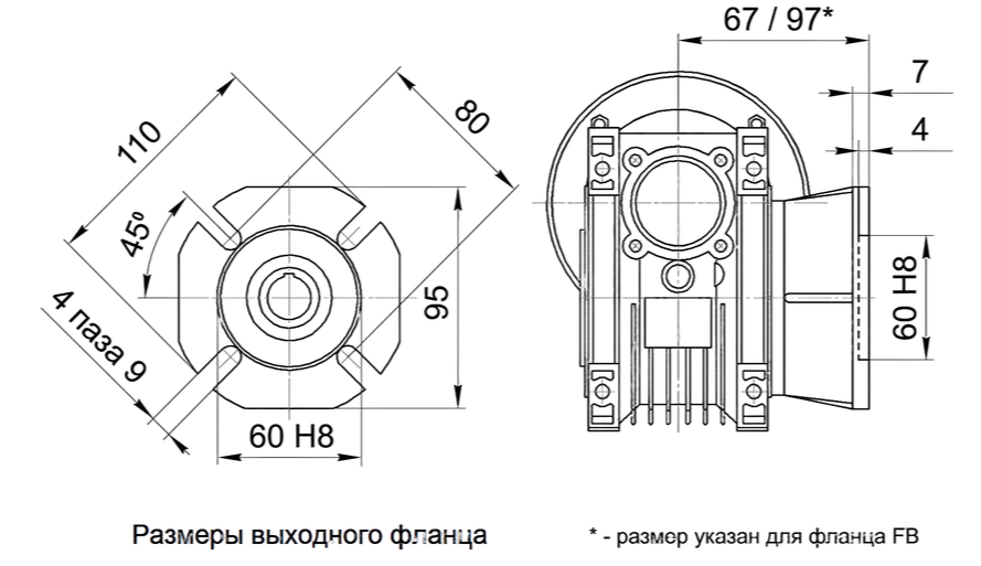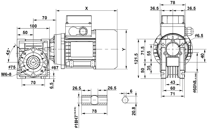 | 040 | 26 | 6.5 | 35 | 67 | 7 | 4 | M6x8(n=4) | 75 | 60 | 9(n=4) | 110 | 95 | 6 | 20.8(21.8) | 45° | 45° | 2.3 |