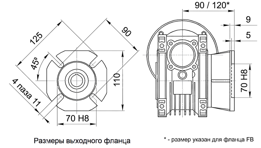 | 090 | 45 | 11 | 70 | 111 | 13 | 6 | M10x18(n=8) | 175 | 152 | 14(n=4) | 210 | 200 | 10 | 38.3(41.3) | 45° | 45° | 13 |