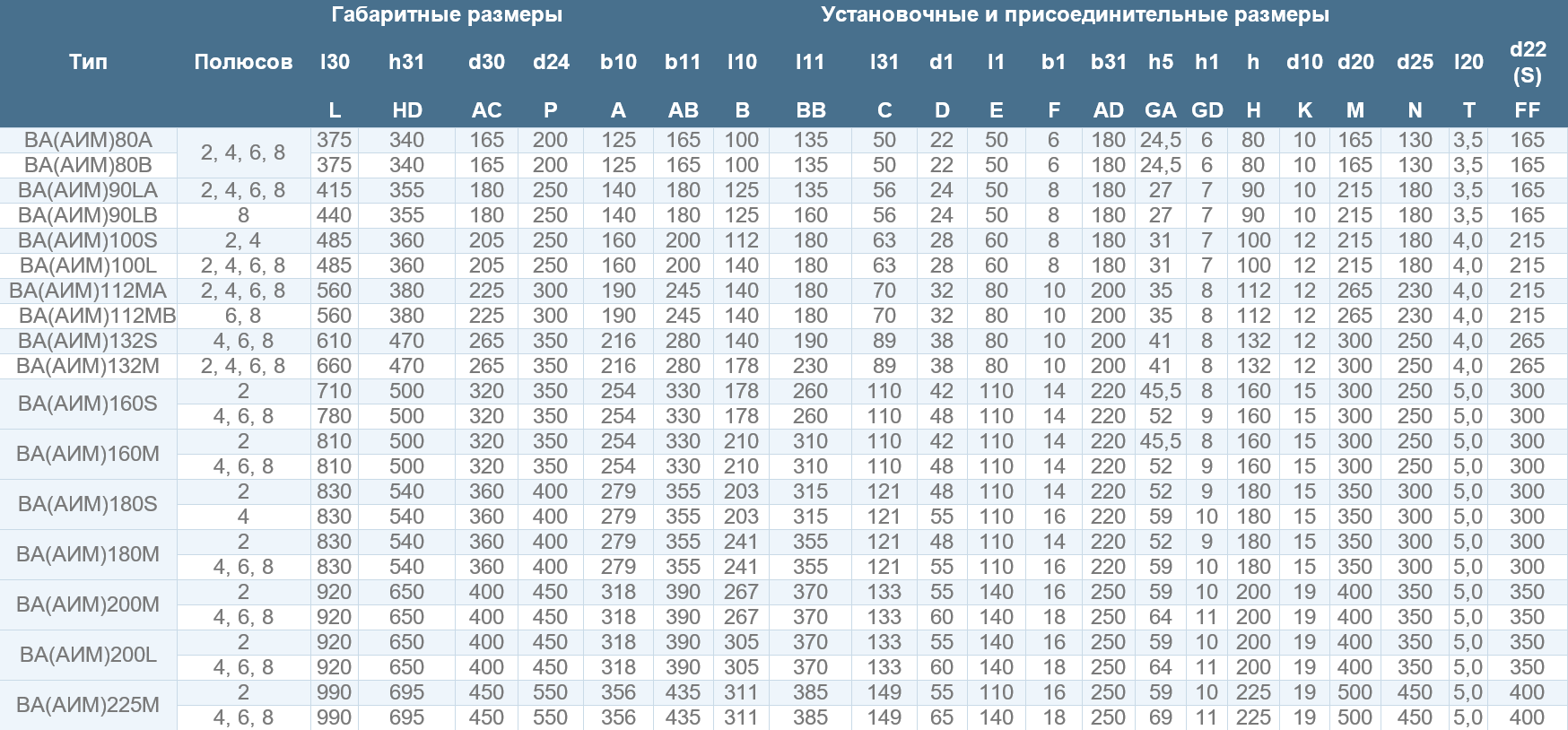 ВА(АИМ) 100L6; 2,2; 938; 80,2; 0,81; 5,1; 4,50; 1,87; 1,99; 47